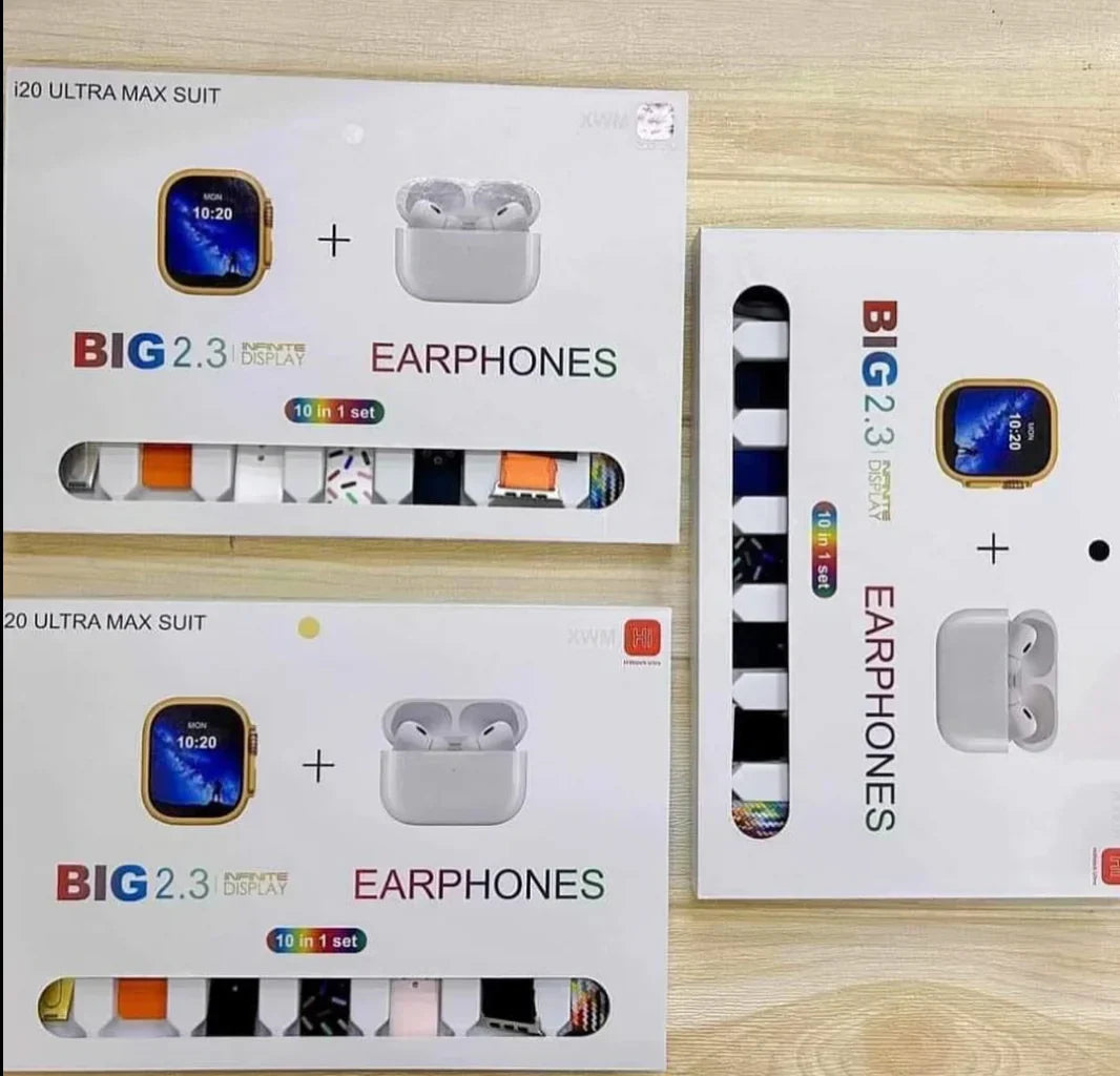 Elevate your tech-savvy lifestyle with the I20 Ultra Max Suit—a complete smartwatch ensemble in one box. Unleash the power of a 2.3-inch large screen accompanied by seven stylish interchangeable straps, ensuring versatility for any occasion. This comprehensive 10-in-1 set comes with Airpods2 for an immersive audio experience. With an IP67 waterproof rating, advanced touchscreen technology, and features like fitness tracking, heart rate monitoring, and remote control functionality, this smartwatch is a technological marvel. Its rotatable design, elegant colors, and compatibility with both Android and iOS make it a standout accessory. Experience a new era of smartwatches with Elec Tech—where innovation meets style.